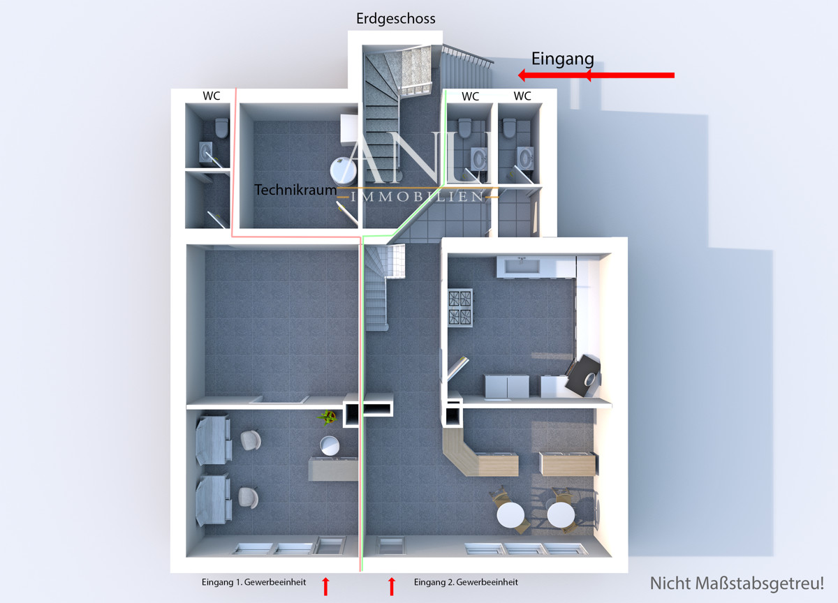 – Zwei vermietete Gewerbeeinheiten: