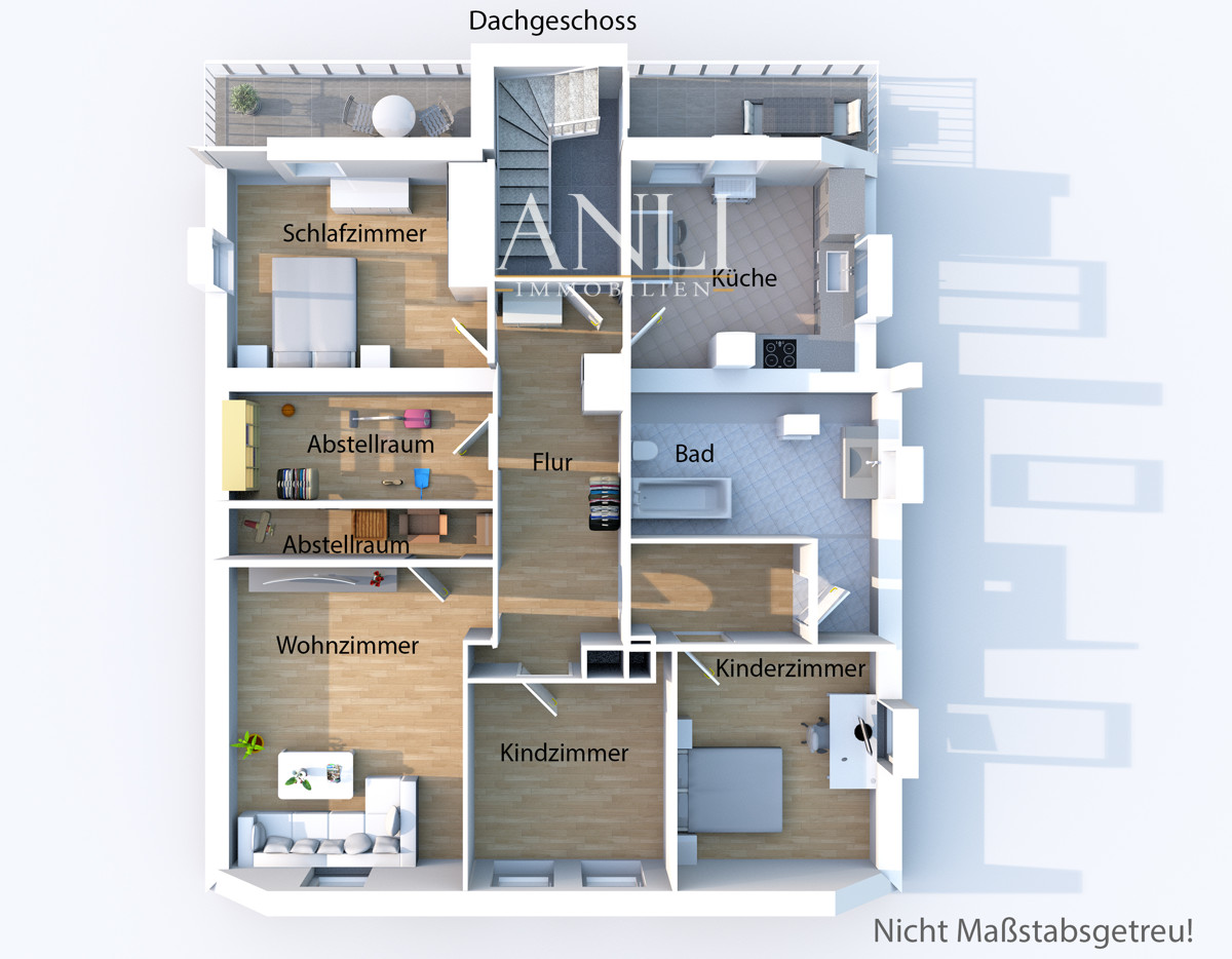Dachgeschoss: 4 Zimmer, ca. 109 m², 2 Balkone | Kaltmiete: 900 €/Monat