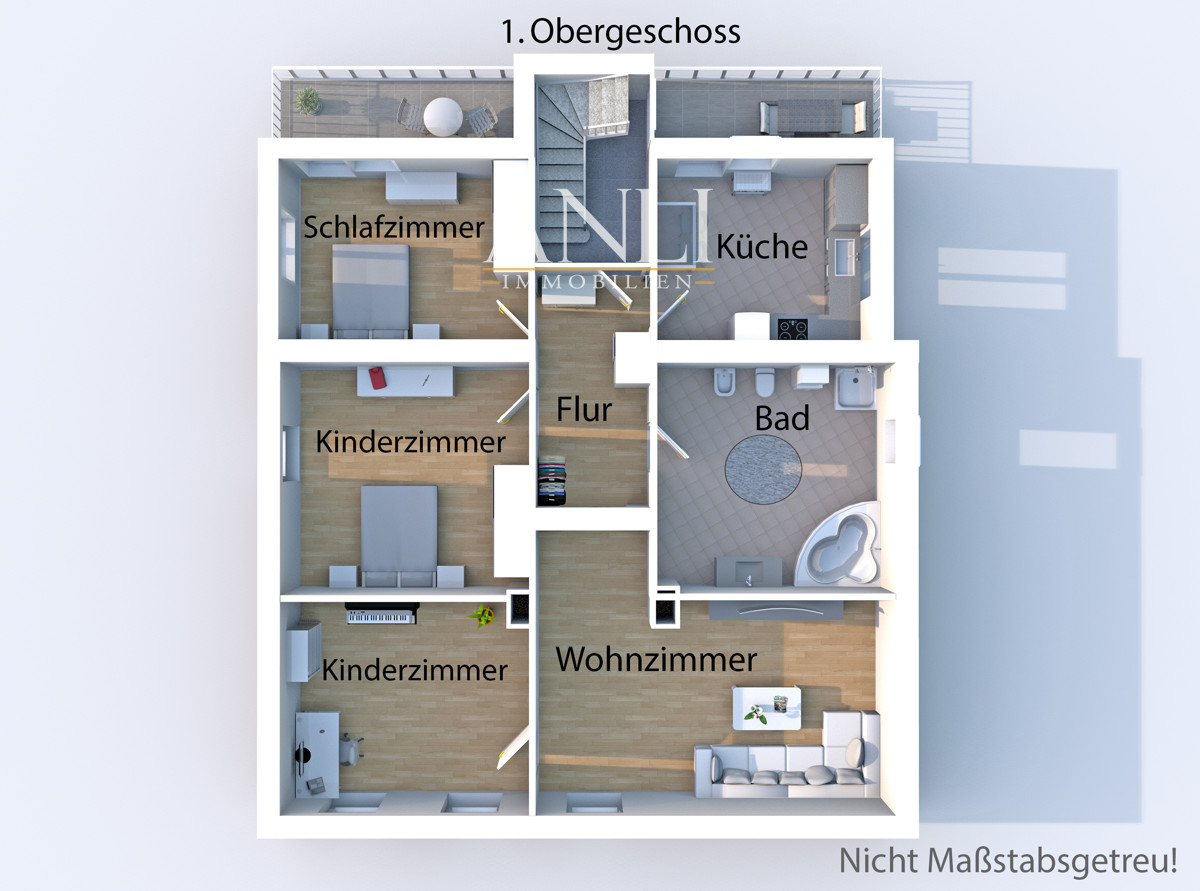 Obergeschoss: 4 Zimmer, ca. 108 m², 2 Balkone | Kaltmiete: 800 €/Monat